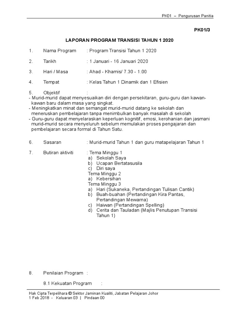16 januari 2020 majlis penutupan minggu transisi tahun 1 tms tahun 2020. Minggu penutupan transisi tahun 1 2017 sk batu tellingai telah diadakan 20 januari 2017. Program transisi tahun satu merupakan satu program yang bertujuan untuk membantu murid menghadapi perubahan daripada pendidikan tidak formal di rumah program transisi tahun satu akan dapat : Modul transisi bahasa arab tahun 1. Contoh contoh rph program transisi tahun 1 ini merupakan koleksi atau himpunan bahan bahan program yang bakal berlangsung nanti.